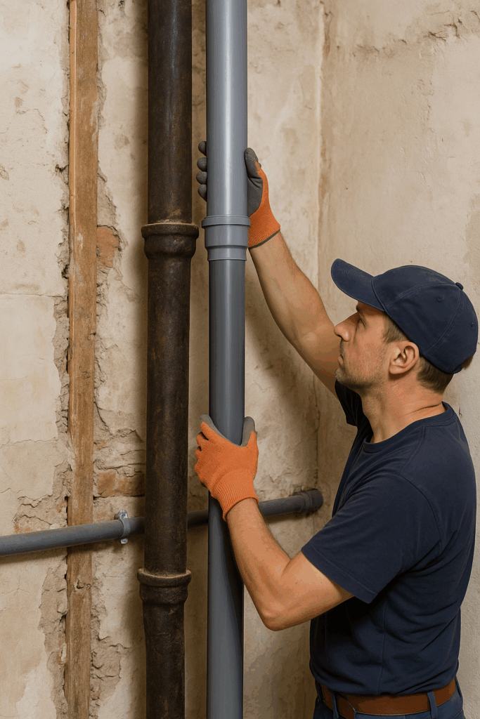 Moderne rør (ofte PVC eller rustfrit stål) installeres. - Genopbygning og finish
